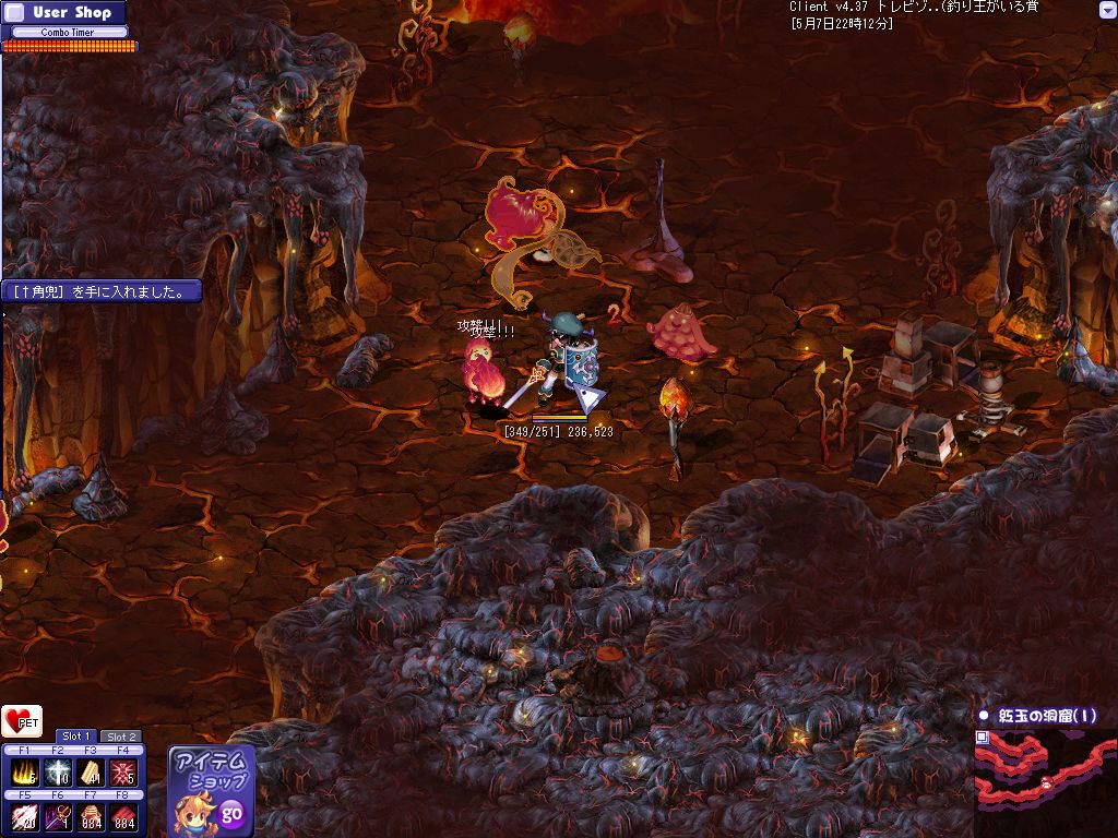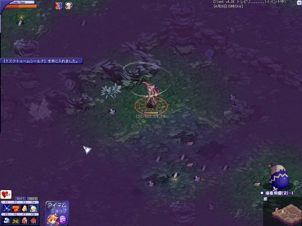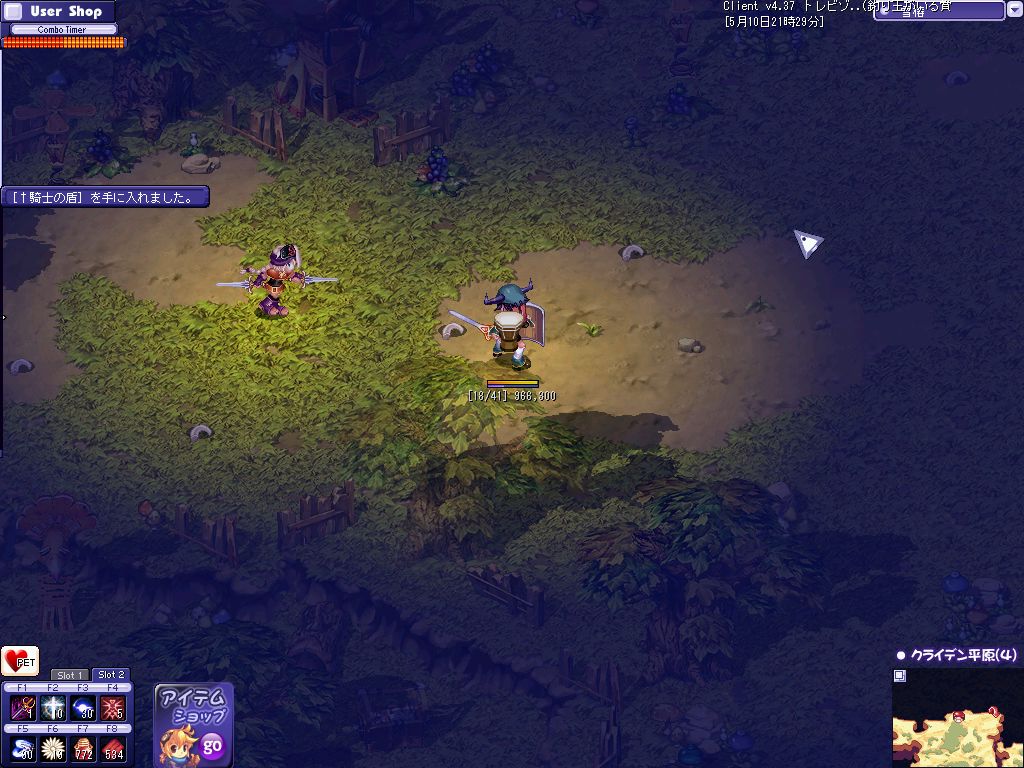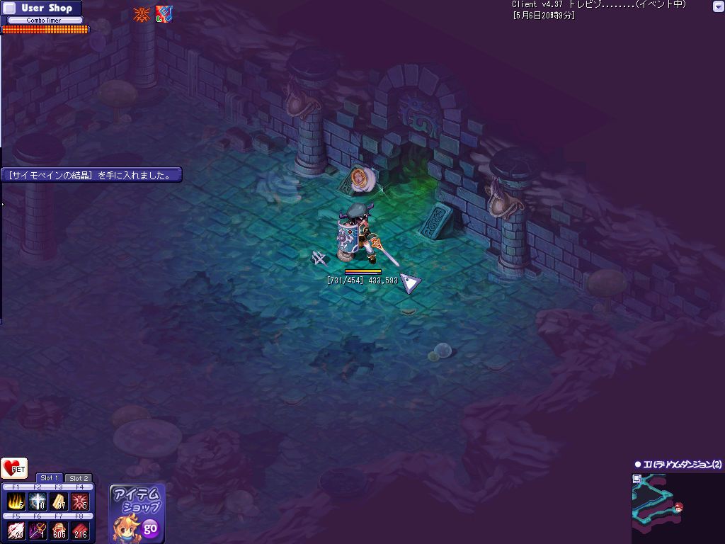 おおよその狩場を探し終わってPOTを補充して昨日落ちたんだ
