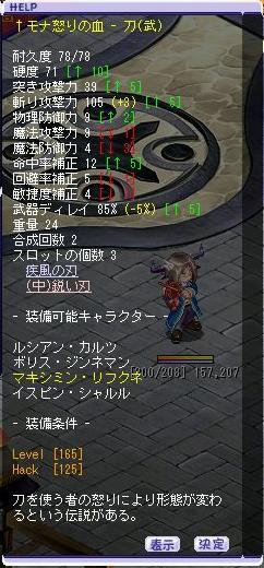 露店のモナ血は精錬にH103最高値に+3+3でH109