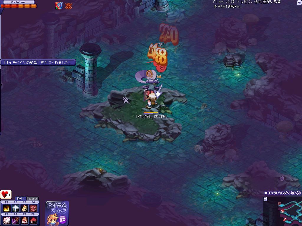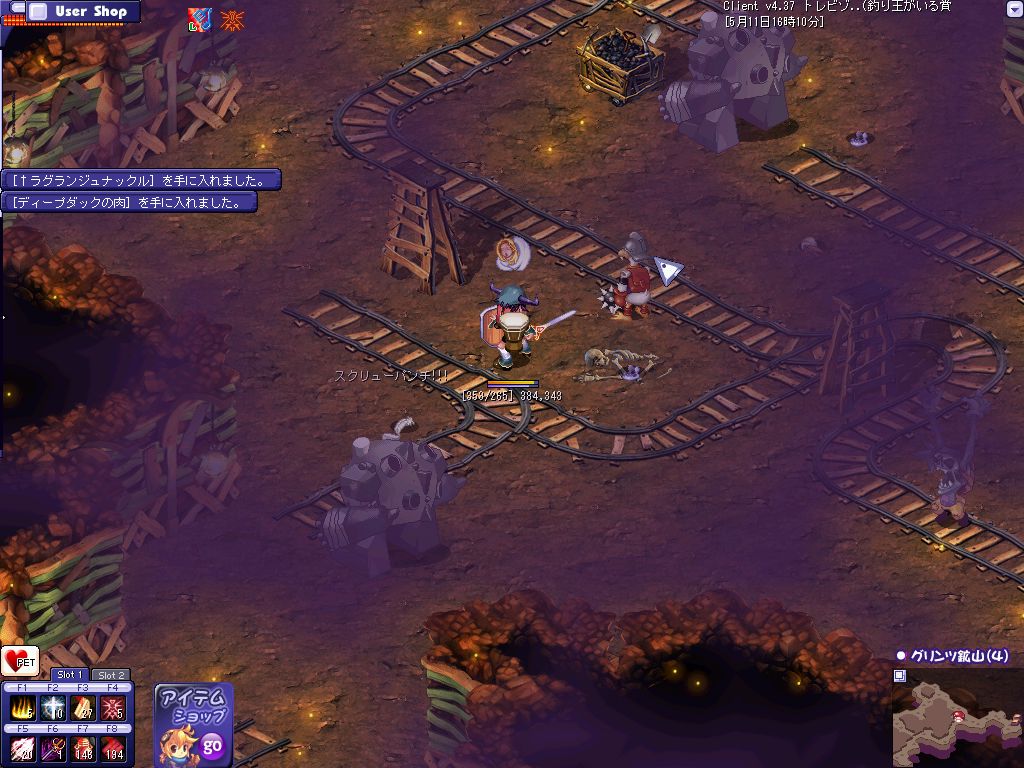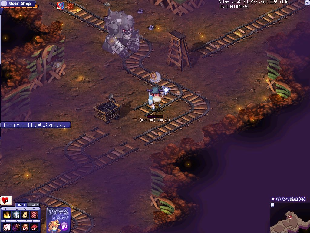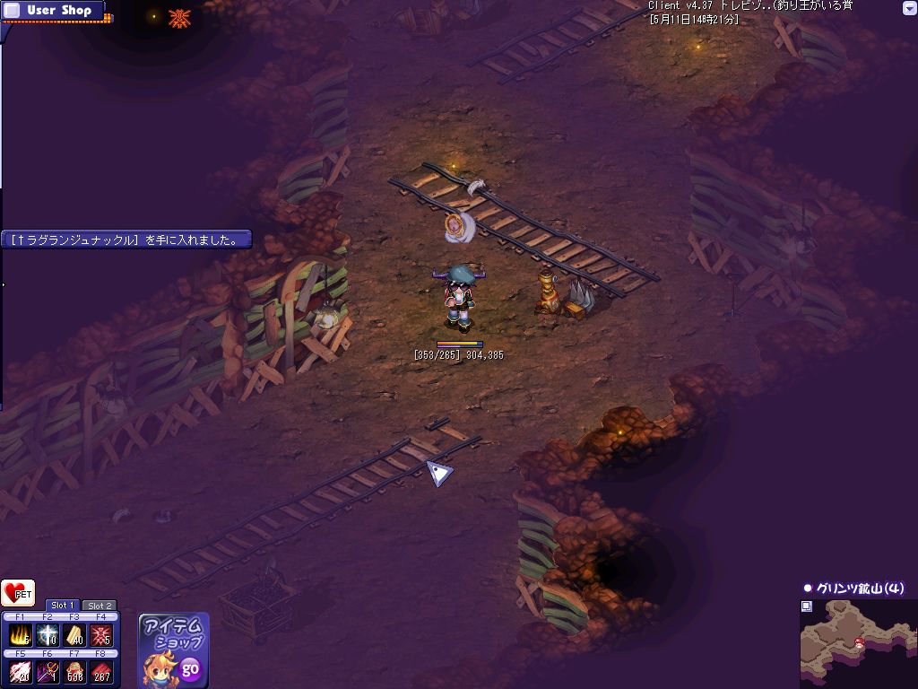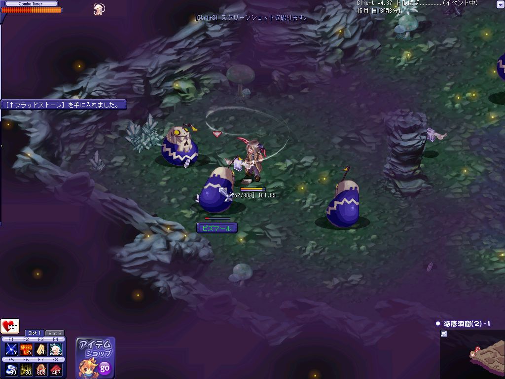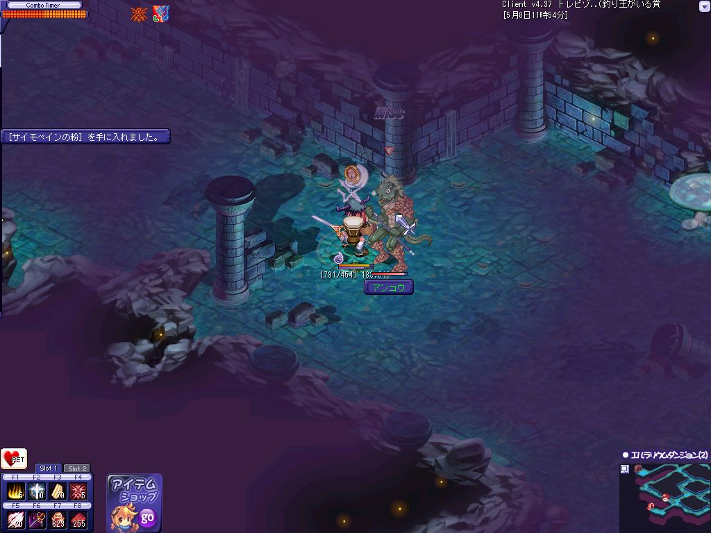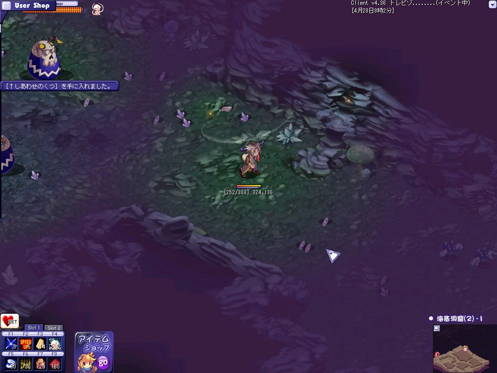 おおよその狩場を探し終わってPOTを補充して昨日落ちたんだ