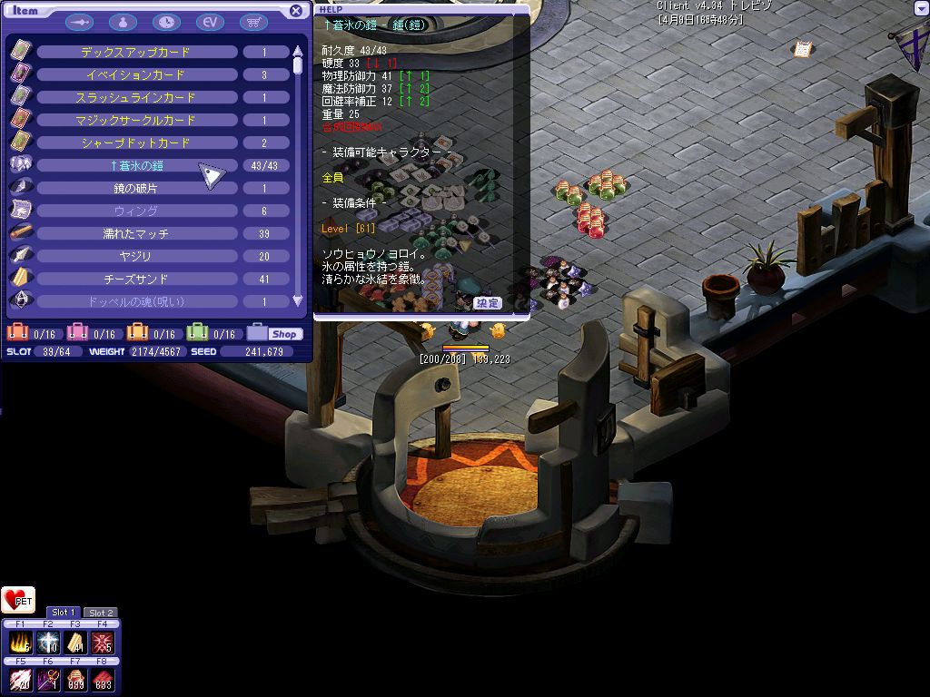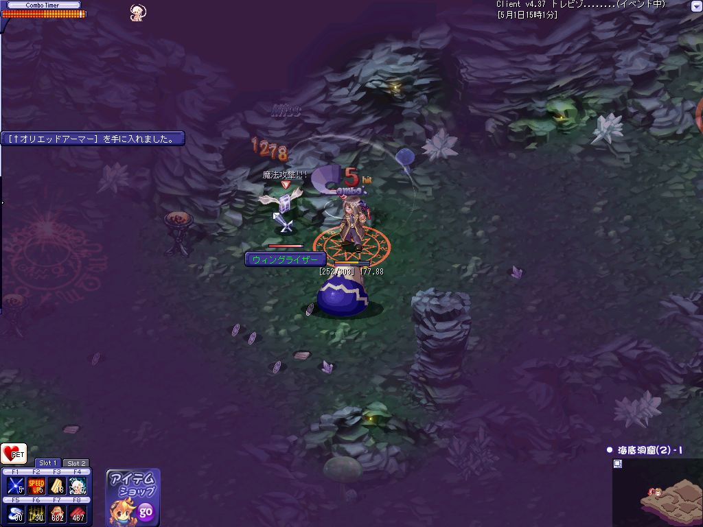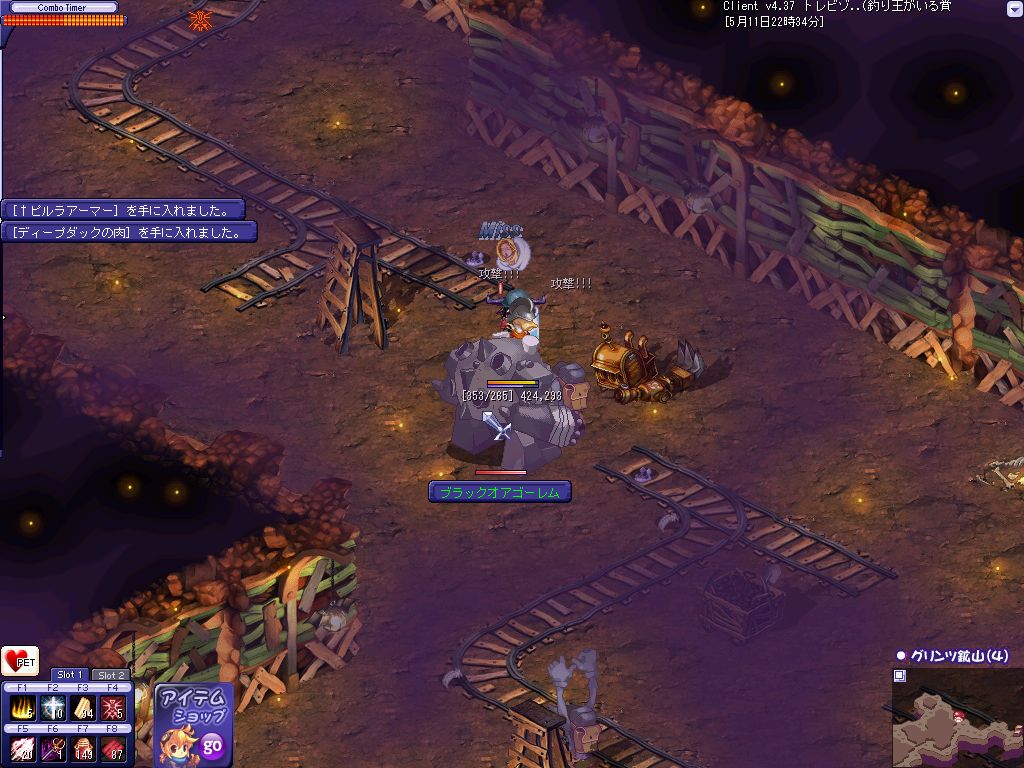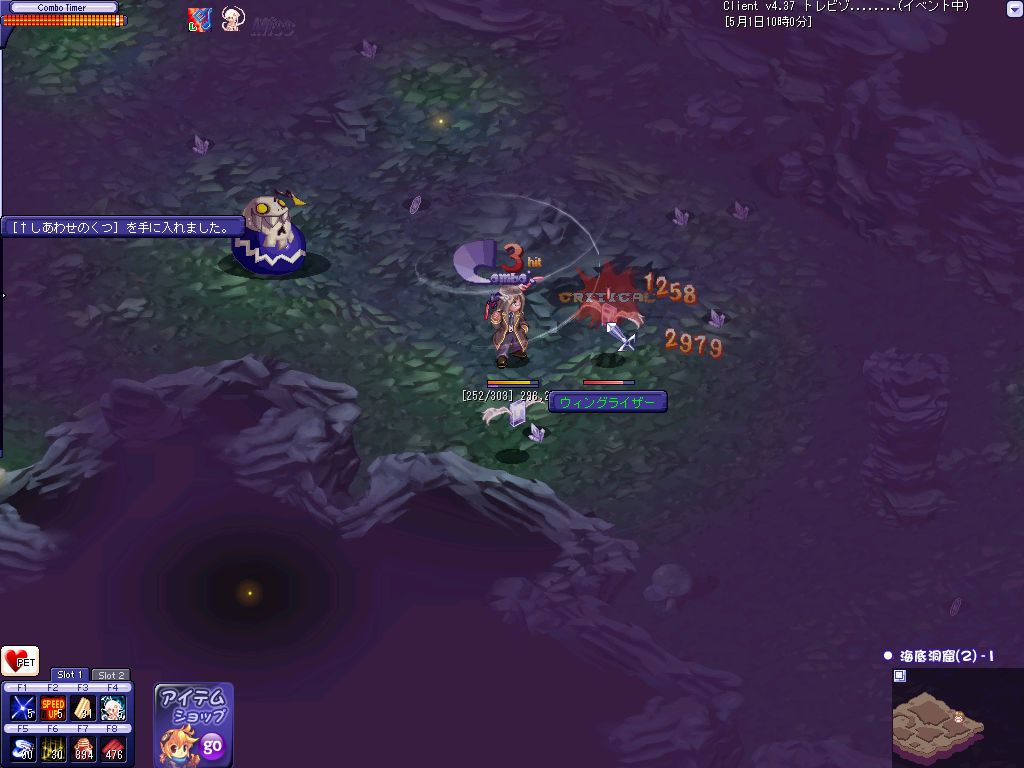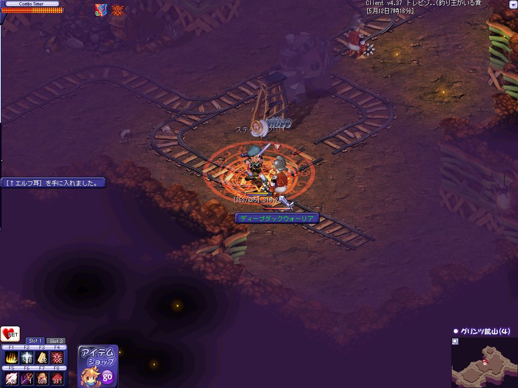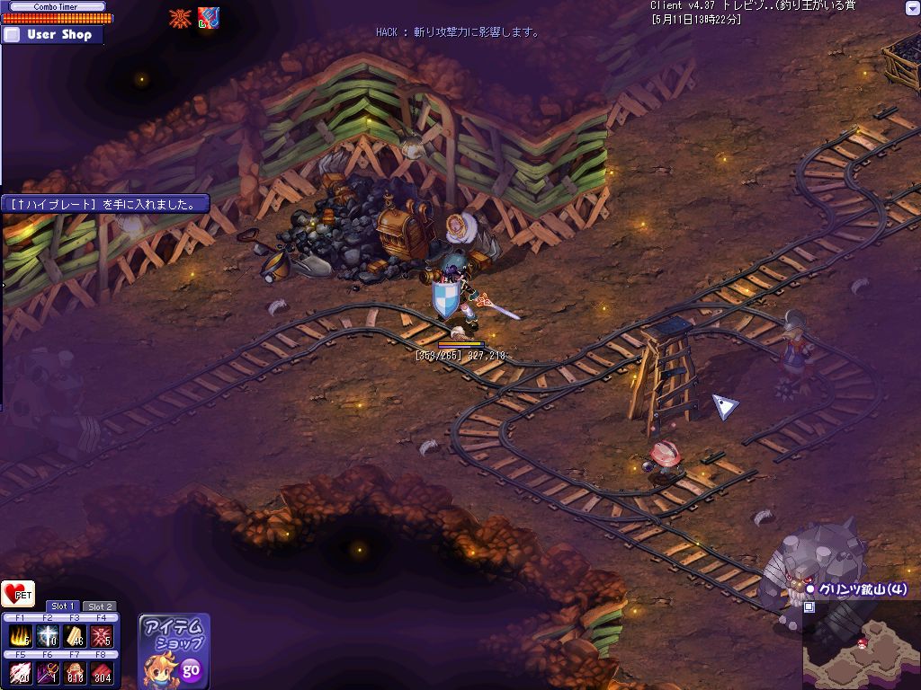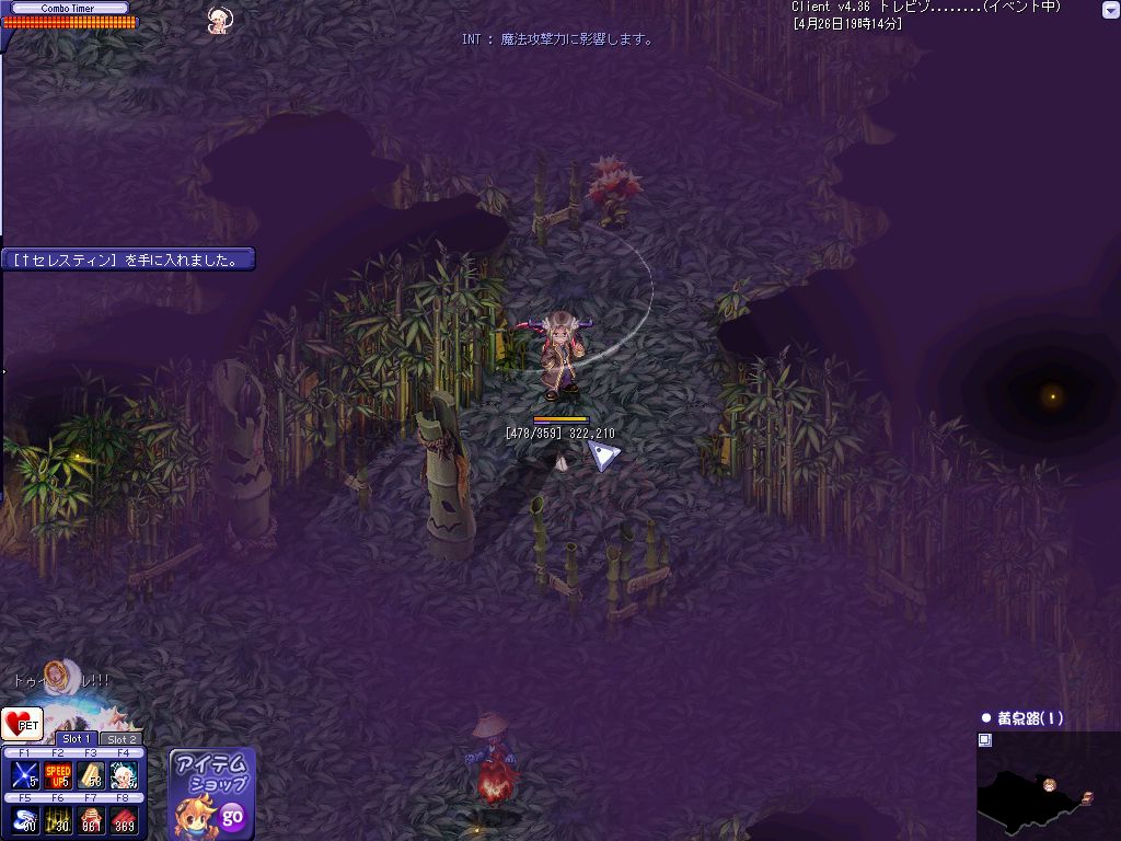 おおよその狩場を探し終わってPOTを補充して昨日落ちたんだ